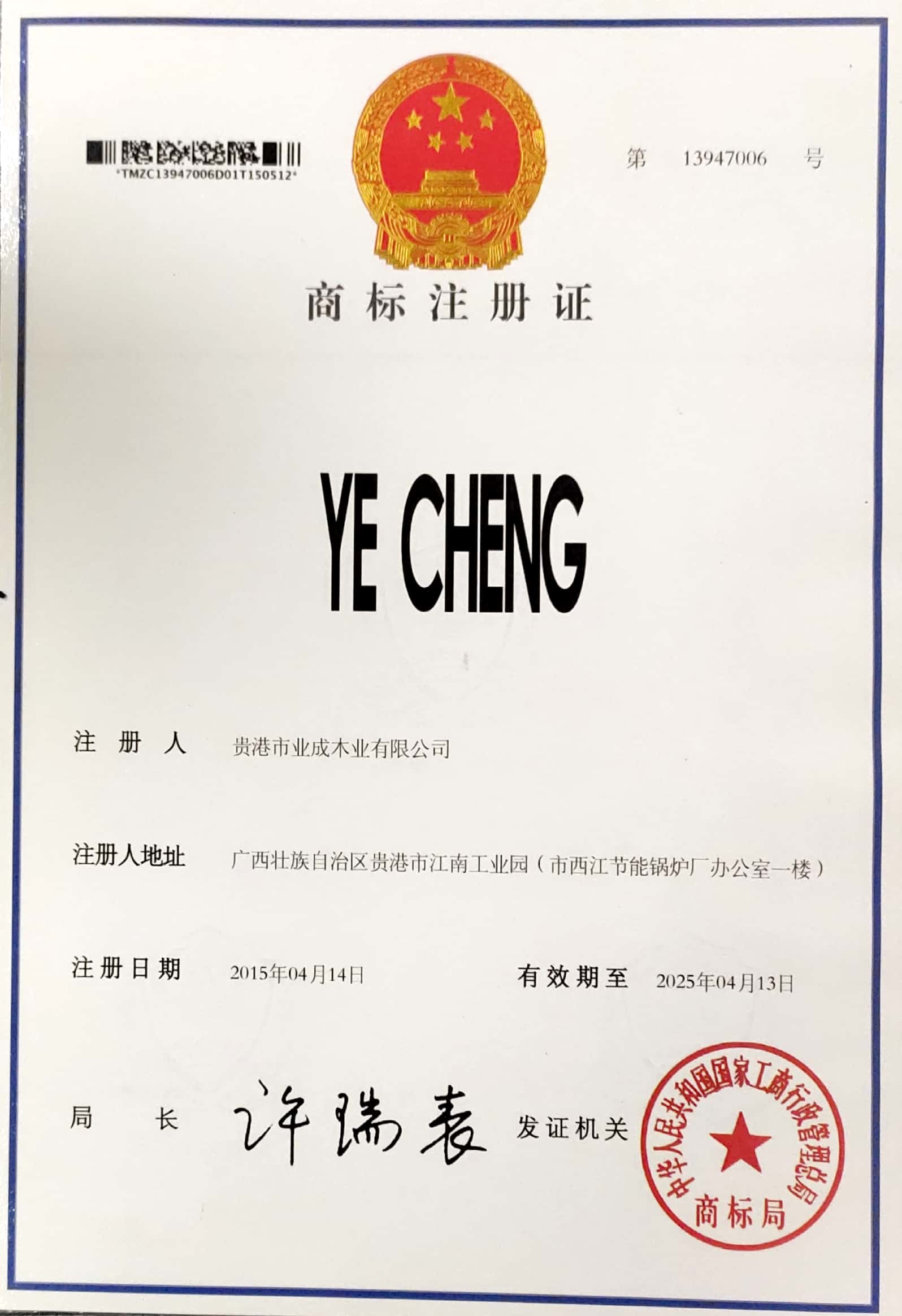 商标业成1